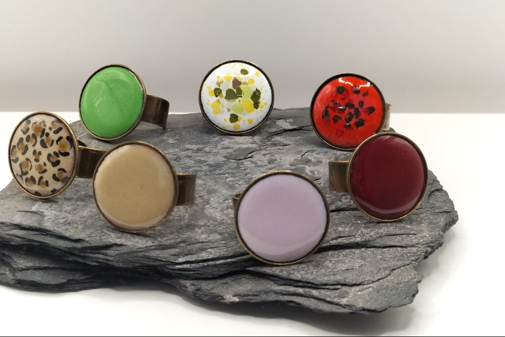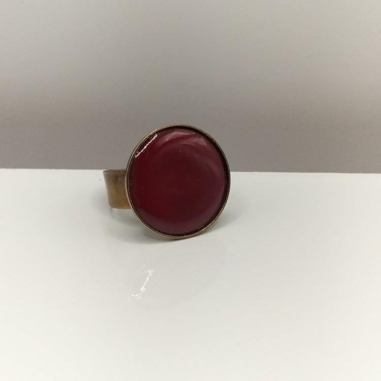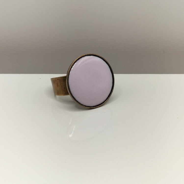 Bague réglable, en laiton vernis (de fabrication française), avec plateau rond de 21 mm. La partie émaillée, brillante et colorée, a un diamètre de 20 mm. Contemporaine et à un prix très doux, elle saura se faire remarquer et donnera une touche colorée à vos tenues. Toutes les pièces émaillées sont réalisées à la main.